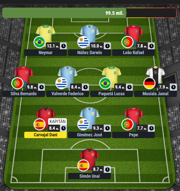 Do zálohy je jasnou volbou Bernardo Silva. Levák, který góly střílí i připravuje, a už se těší na outsidera skupiny – Jižní Koreu. Federica Valverdeho již lze považovat za oporu Realu Madrid, začal být gólový, za pouhých 8,4 milionů výborná možnost.